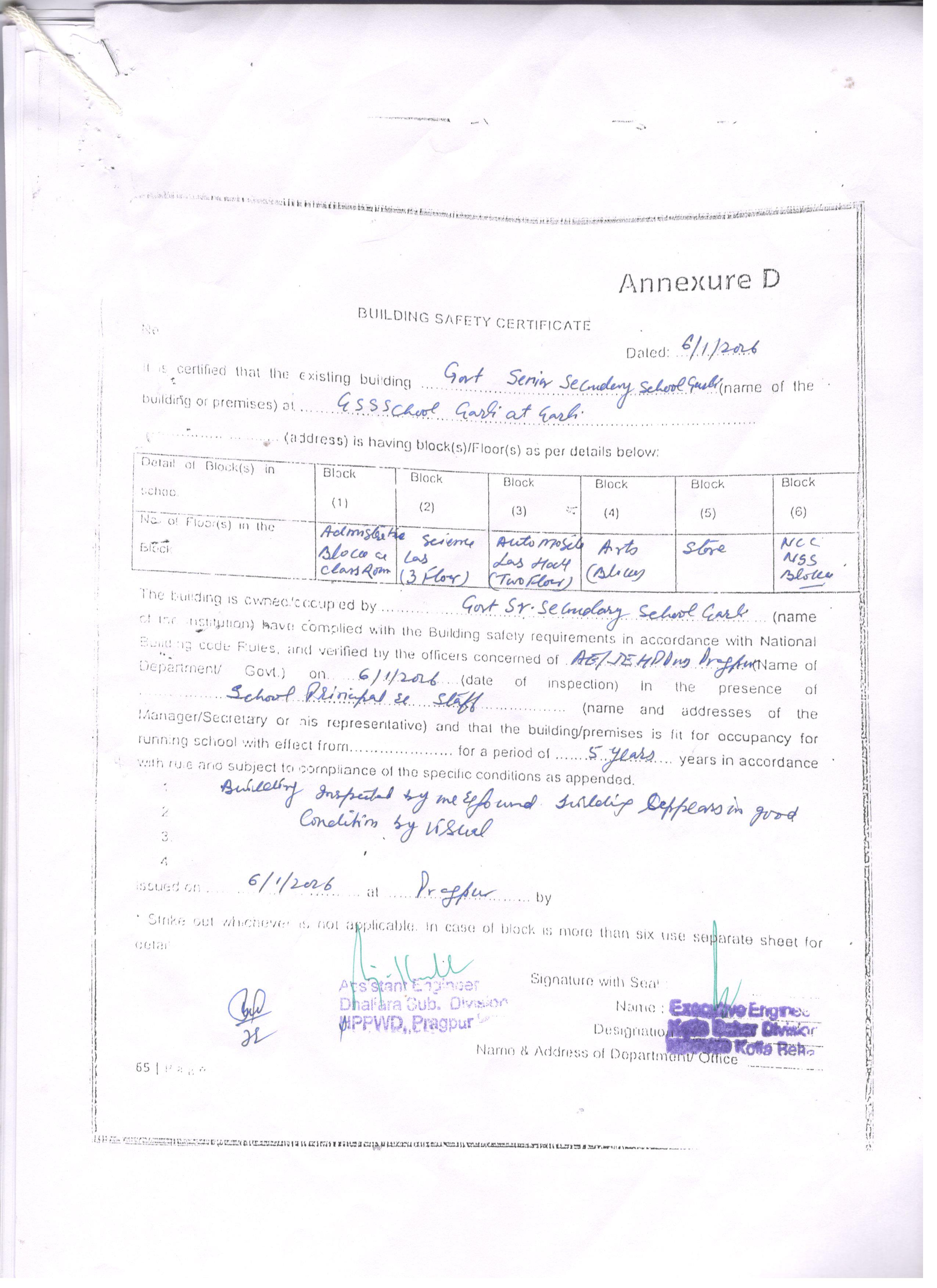 5 | COPY OF VALID BUILDING SAFTEY CERTIFICATE AS PER THE NATIONAL BUILDING CODE | https://static.wixstatic.com/media/d6acd3_2bd02578f8d14d9185b4412a21caa7fe~mv2.jpg |