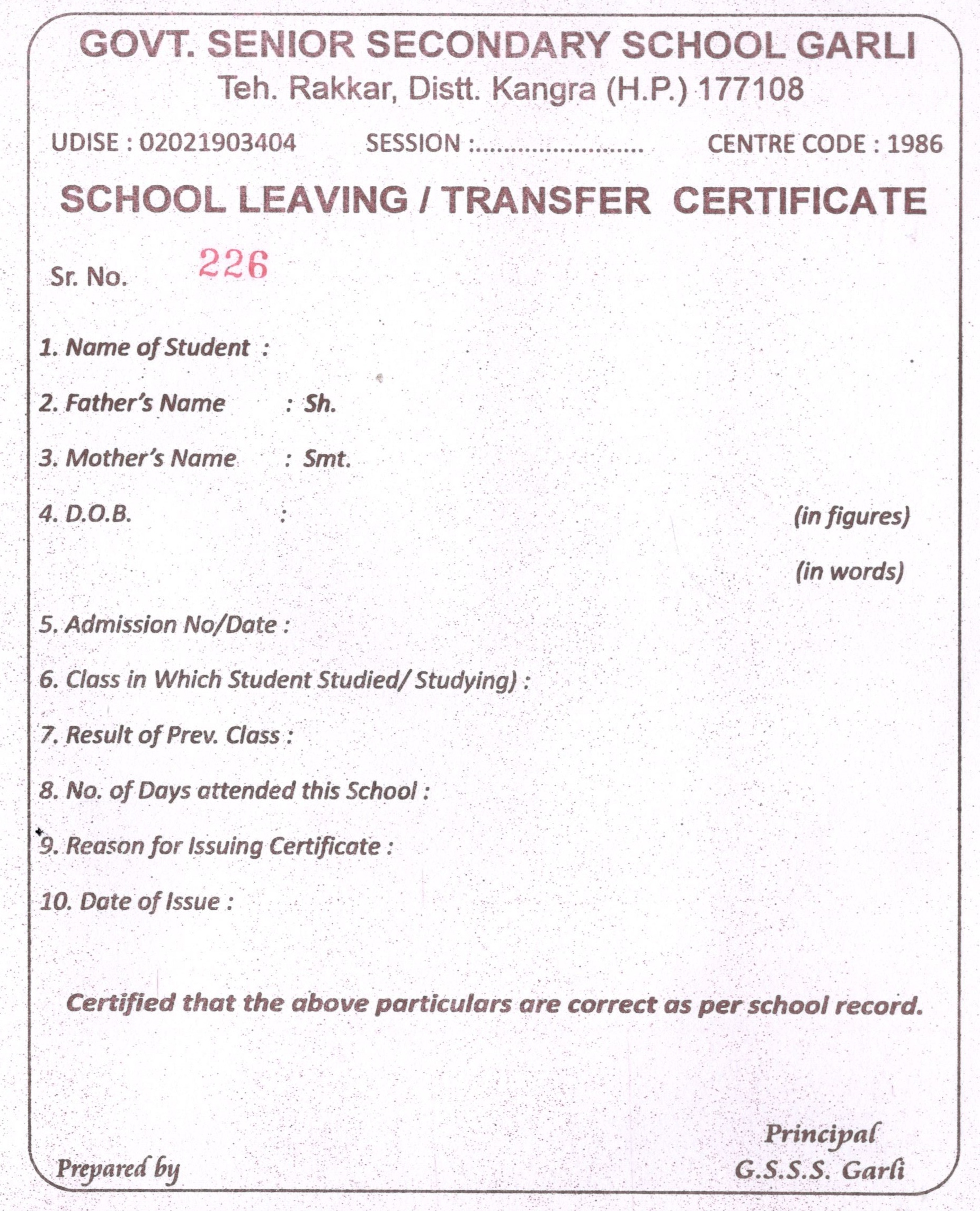 1 | Name of the School | Government Senior Secondary School GARLI |